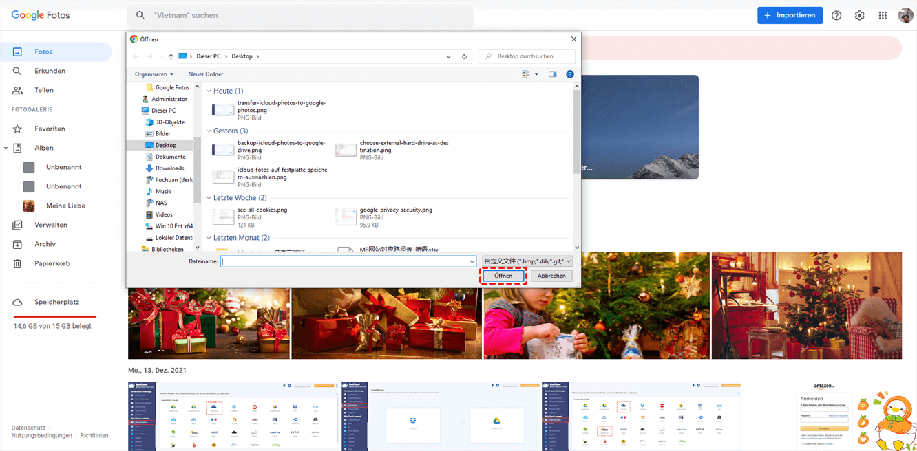 Schritt 4. Wählen Sie dann alle Fotos im Ordner aus, klicken Sie auf „Öffnen“ und sie werden zu Google Fotos hochgeladen.