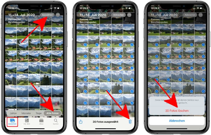 3. Wählen Sie die Fotos aus, die aus iCloud gelöscht wurden, und tippen Sie auf Löschen.