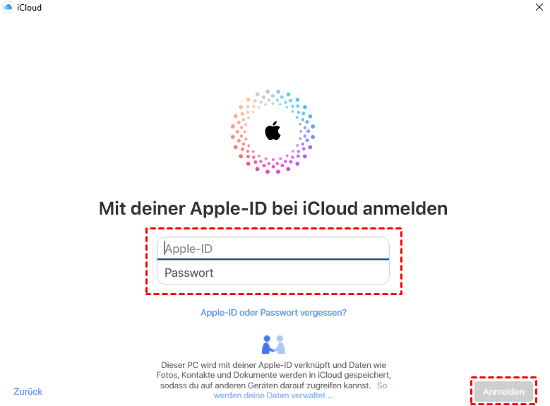 - iCloud für Windows unter Windows 10 und iCloud.com verwenden unterschiedliche Apple-IDs.