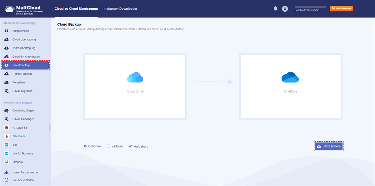 Bitte beachten Sie die folgenden einfachen Schritte, um iCloud Drive mit MultCloud auf OneDrive zu sichern: