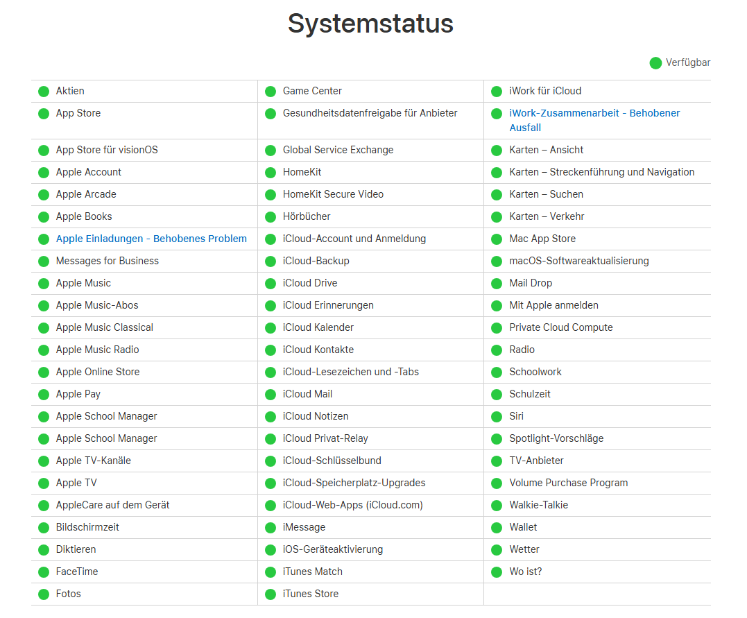 Bevor Sie Änderungen vornehmen, prüfen Sie, ob die Apple-Server erreichbar sind.