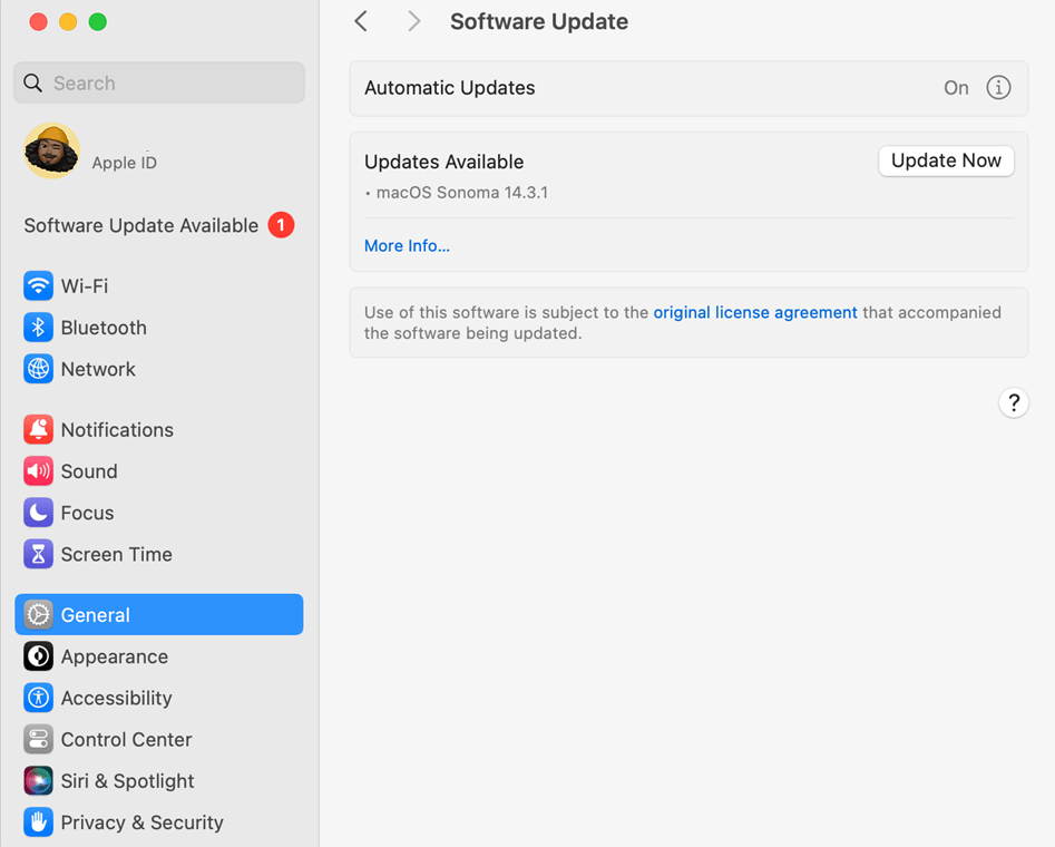 2. Gehen Sie auf Ihrem Mac zu „Systemeinstellungen“ > „Allgemein“ > „Softwareupdate“.