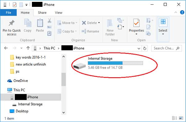 Schritt 3: Öffnen Sie das Apple iPhone im Datei-Explorer und klicken Sie auf „Interner Speicher“.