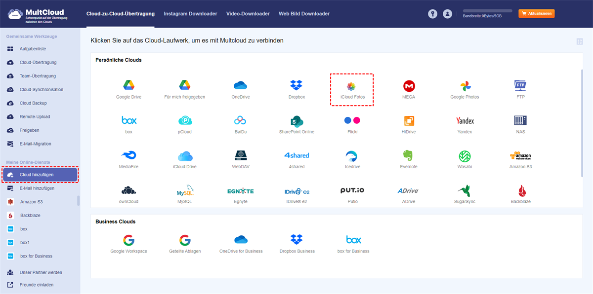 Wenn Sie einige Fotos und Videos mit iCloud synchronisiert haben und diese zu Google Drive oder Google Fotos verschieben möchten, wäre der leistungsstarke webbasierte Multi-Cloud-Speichermanager MultCloud eine große Hilfe für Sie.