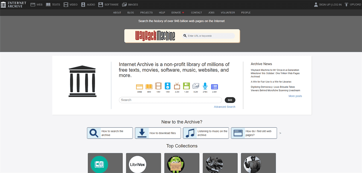 Eine legale und sichere Option mit einer riesigen Sammlung an klassischen und gemeinfreien Filmen, Webseiten, Texten, Audiodateien, Software und Bildern. Damit können Sie kostenlos HD-Filme herunterladen.