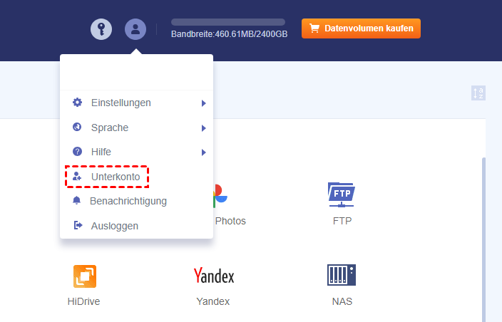 Wenn der Nutzer kein Google-Konto besitzt oder sich nicht anmelden kann, aber dennoch Dateien auf Ihr Google Drive-Konto hochladen muss, kann die Unterkonto-Funktion in MultCloud hilfreich sein. Diese Funktion ähnelt der „Freigeben“-Funktion in Google Drive. Mit dem Unterschied, dass Uploader Dateien direkt von dem in MultCloud erstellten Unterkonto auf Google Drive hochladen können, ohne über ein Google-Konto zu verfügen.