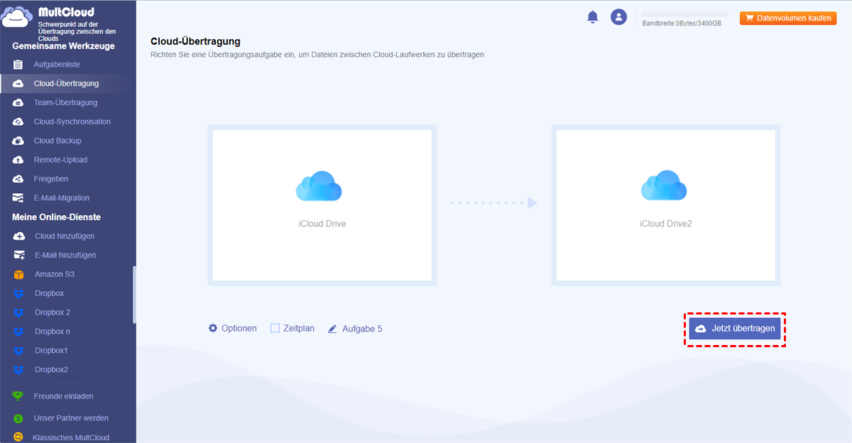 Übertragung von iCloud in eine andere Cloud über MultCloud Cloud-Übertragung