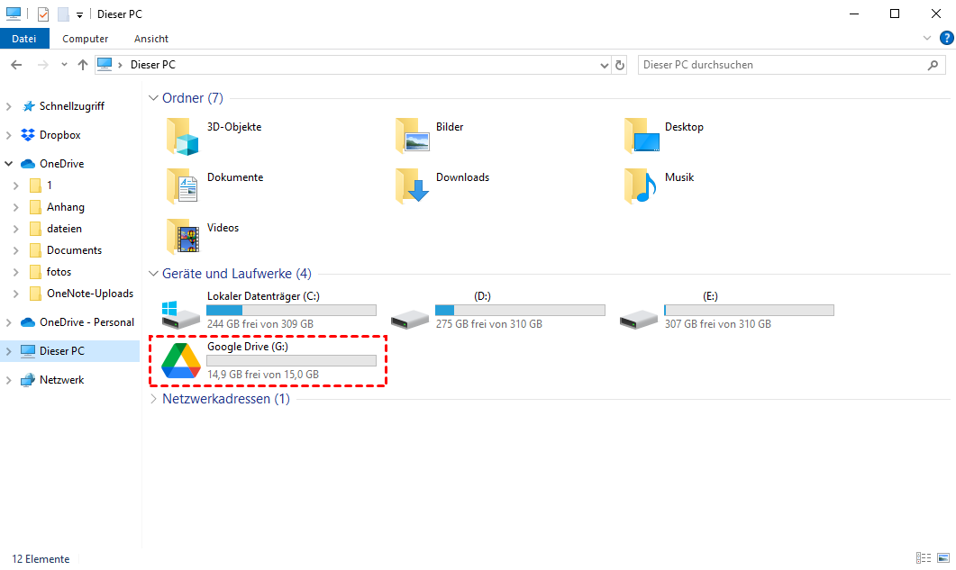 Schritt 2. Melden Sie sich gegebenenfalls in Ihrem Google-Konto an. Nach der Installation der App und dem Anmelden finden Sie ein neues Laufwerk im Windows Explorer, das Ihrem Online-Google Drive entspricht.