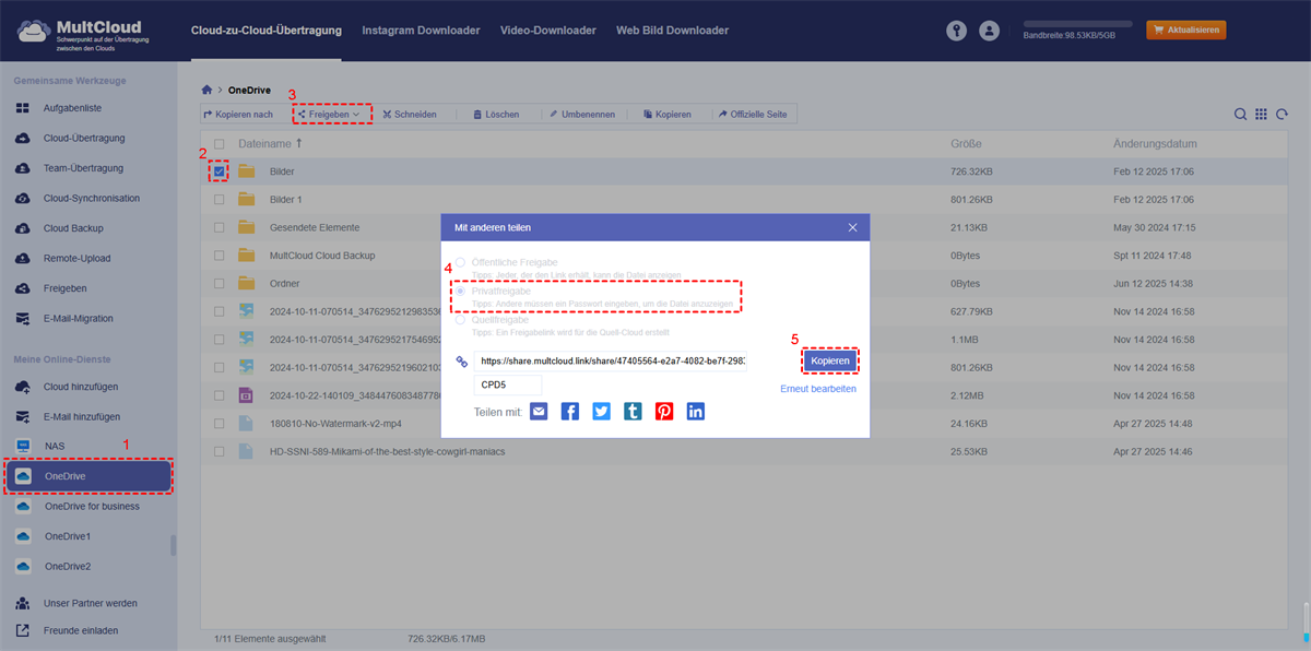 - Flexible und sichere Dateifreigabe: MultCloud bietet öffentliche Freigaben, private Freigaben (passwortgestützt) und Quellfreigaben, sodass Sie Cloud-Dateien mit jedem teilen können, der sie benötigt.