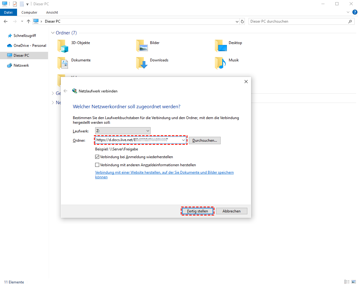 So verbinden Sie OneDrive über den Datei-Explorer mit dem Netzlaufwerk