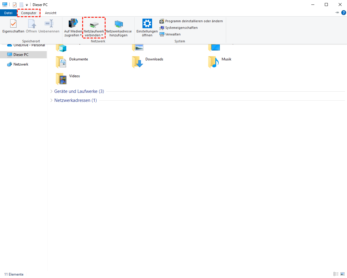 Schritt 4: Klicken Sie auf „Computer“ > „Netzlaufwerk verbinden“.