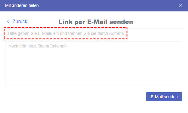 5. Geben Sie die E-Mail-Adresse Ihres OneDrive-Business-Kontos ein und klicken Sie auf E-Mail senden, um OneDrive Personal mit Business zu teilen.