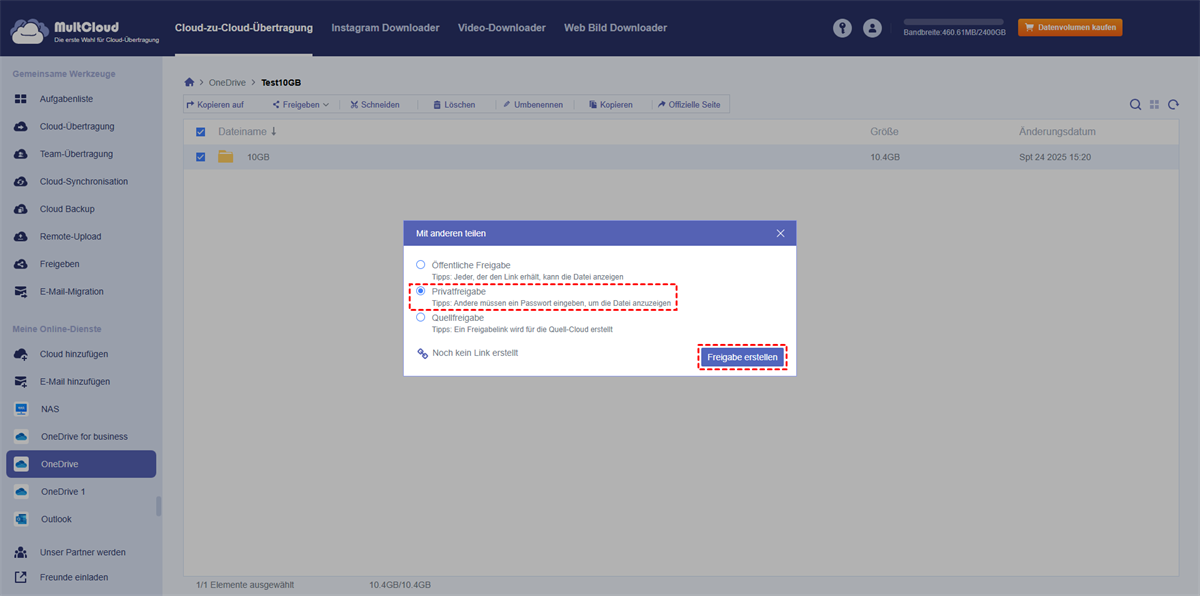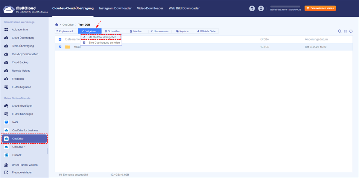 Methode 2: Persönliche OneDrive-Ordner direkt über MultCloud mit OneDrive Business teilen