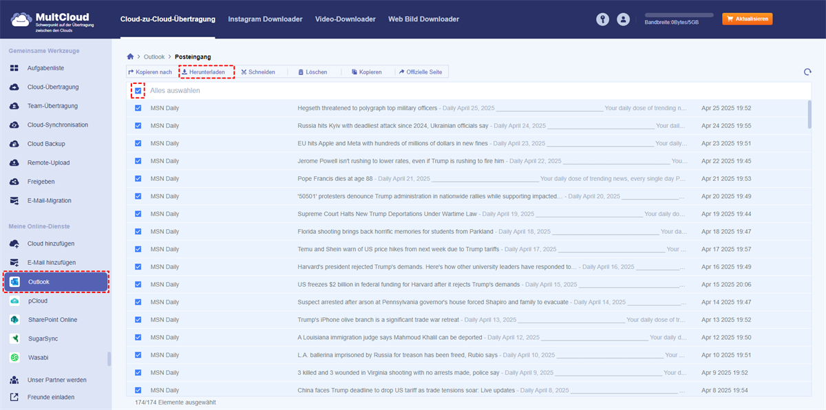 Methode 1. Alle Outlook-E-Mails als PDFs über MultCloud herunterladen