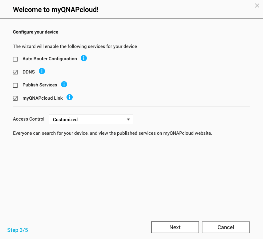 Schritt 3: Wählen Sie aus, welche NAS-Dienste aktiviert werden sollen, und stellen Sie die „Zugriffskontrolle“ ein.