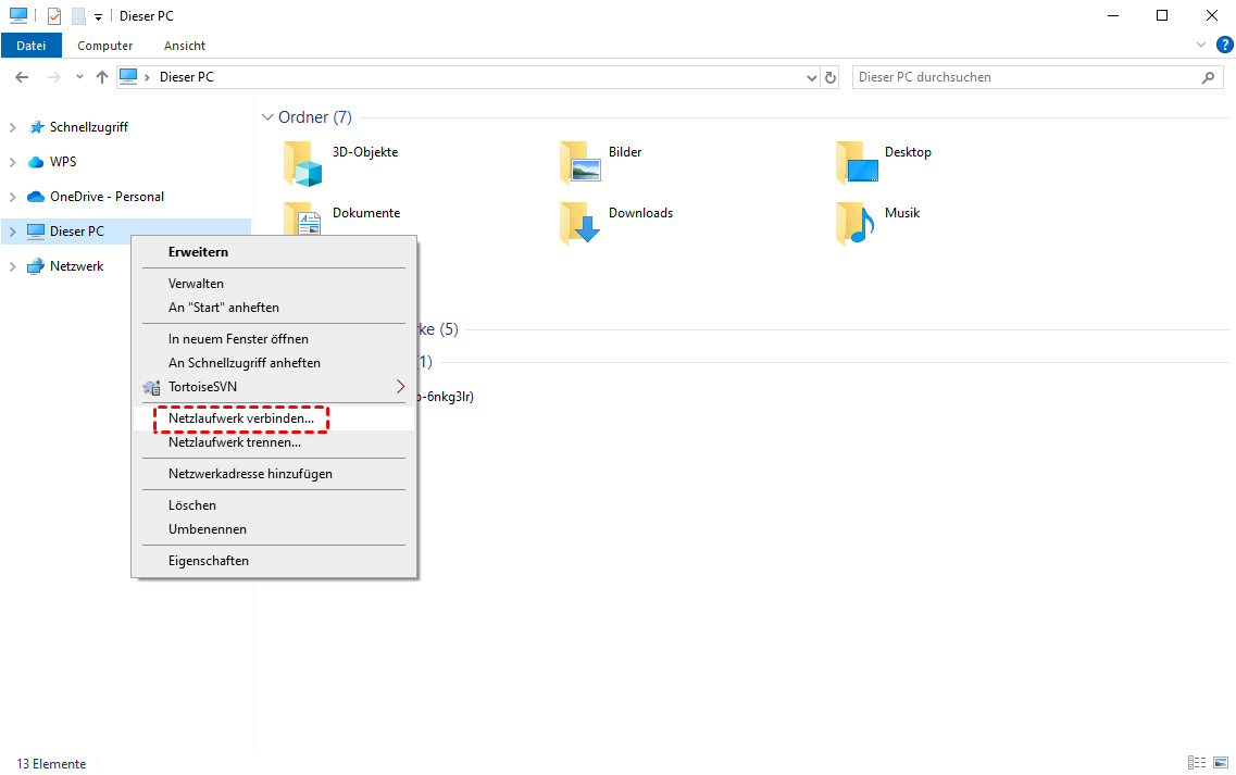 Schritt 2. Gehen Sie zum Windows-Explorer auf Ihrem Computer >> klicken Sie mit der rechten Maustaste auf „Computer“ (oder „Dieser PC“) >> wählen Sie „Netzlaufwerk verbinden...“.