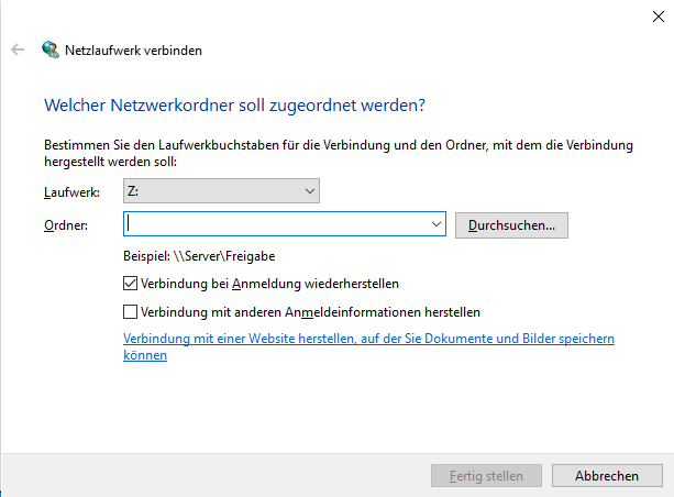 - a. Wählen Sie einen Laufwerksbuchstaben für die verbundene SharePoint-Website.
