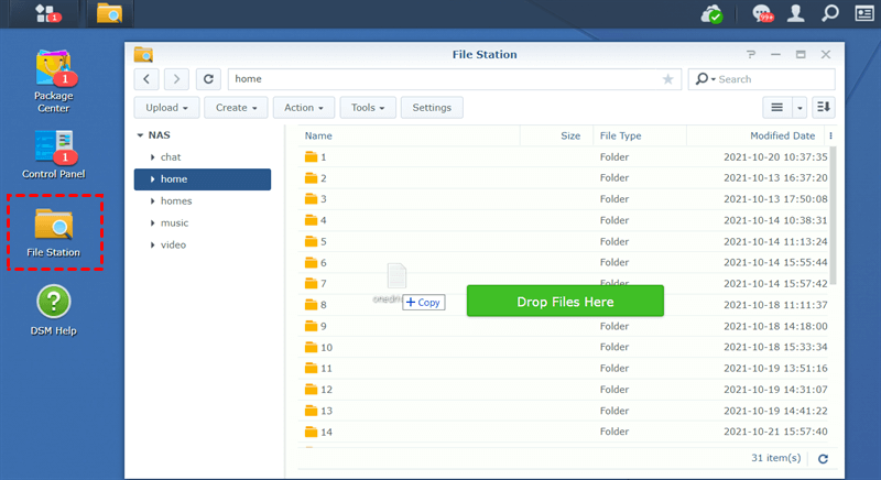 Schritt 3: Gehen Sie nun zu Ihrem Synology NAS und öffnen Sie die Dateiverwaltung. Ziehen Sie dann die heruntergeladenen Daten darauf.