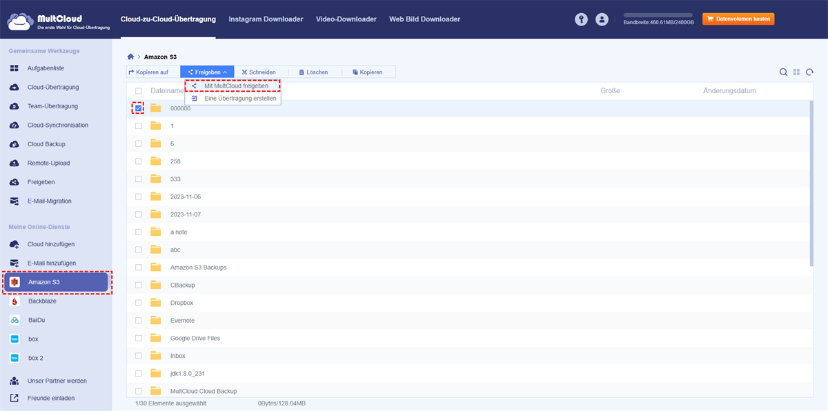 So funktioniert die sichere Dateifreigabe für Amazon S3 mit MultCloud ganz einfach: