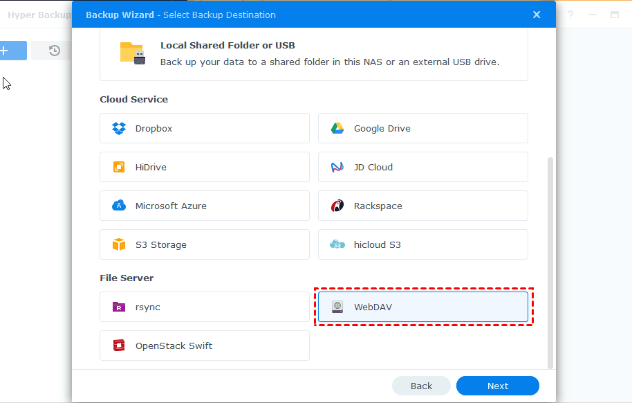 Wenn Sie das oben genannte Problem mit der nicht funktionierenden Synology Hyper Backup WebDAV-Sicherung behoben haben, befolgen Sie die folgenden Schritte, um eine Synology WebDAV-Sicherung mit Hyper Backup durchzuführen:
