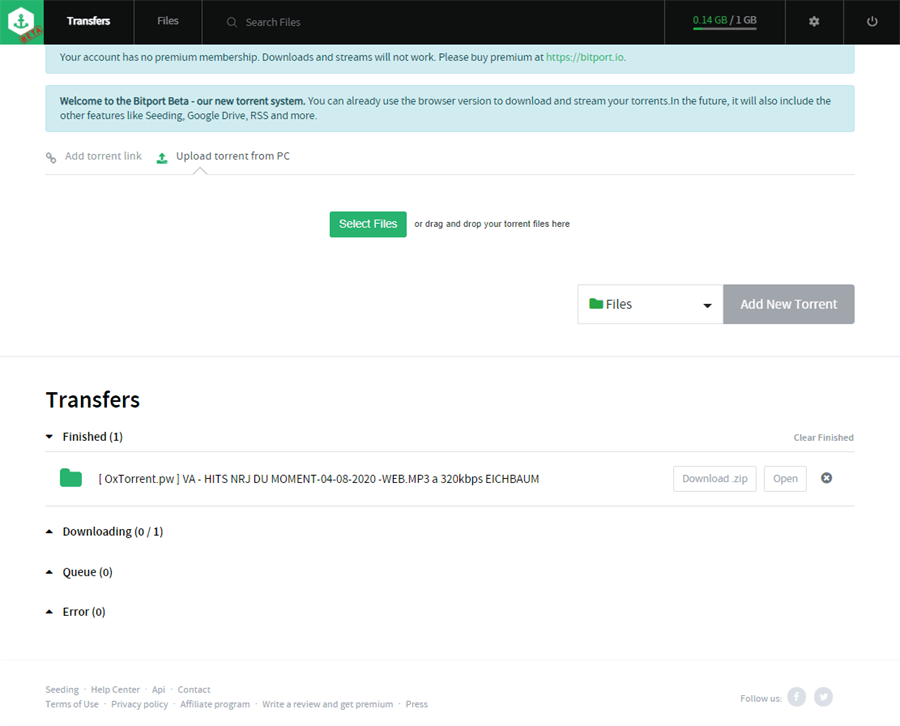 Bitport ist einer der beliebtesten Cloud-Torrenting-Dienste, der es Ihnen ermöglicht, Torrents über seine Cloud und dann mit hoher Geschwindigkeit auf Ihre Geräte herunterzuladen. Wenn Ihre Torrent-Bedürfnisse recht einfach sind, können Sie dieses Tool ausprobieren, um Torrents mit einem Webbrowser herunterzuladen.