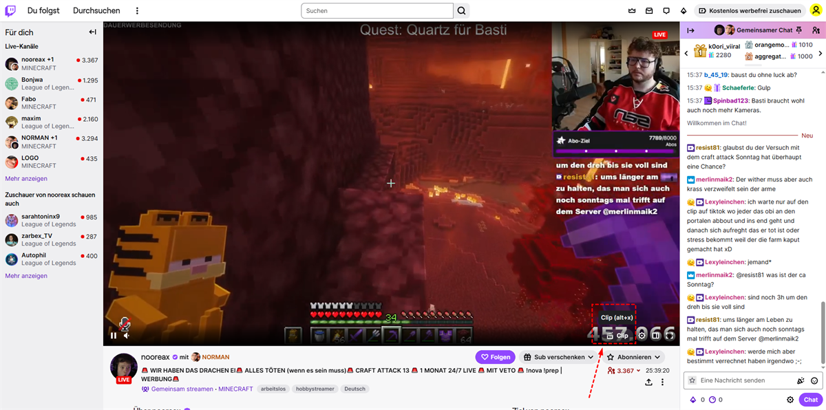 Bevor du Twitch-Clips herunterlädst, solltest du wissen, wie man einen Twitch-Clip erstellt. Es ist kinderleicht. Folge einfach diesen Schritten: