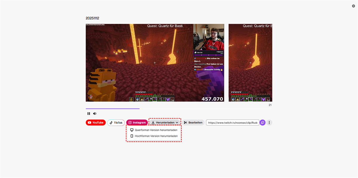Tipp: Sie können auch die Funktion „In Cloud hochladen“ verwenden, um die Twitch-Clips in einem Online-Speicher zu exportieren.