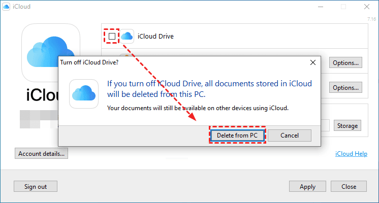 Bitte beachten Sie, dass das Deaktivieren von iCloud Drive unter Windows die weitere Synchronisierung und den Zugriff auf Ihre iCloud Drive-Dateien auf diesem Gerät verhindert. Ihre Dateien sind weiterhin über andere Geräte oder die iCloud-Website verfügbar.