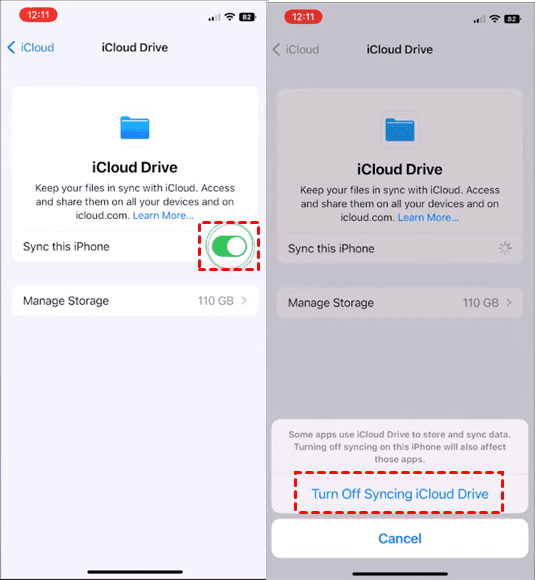 6. Nachdem Sie Ihre Auswahl getroffen haben, wird iCloud Drive auf Ihrem iPhone deaktiviert.