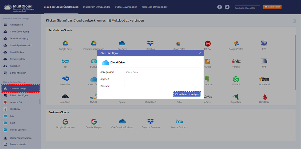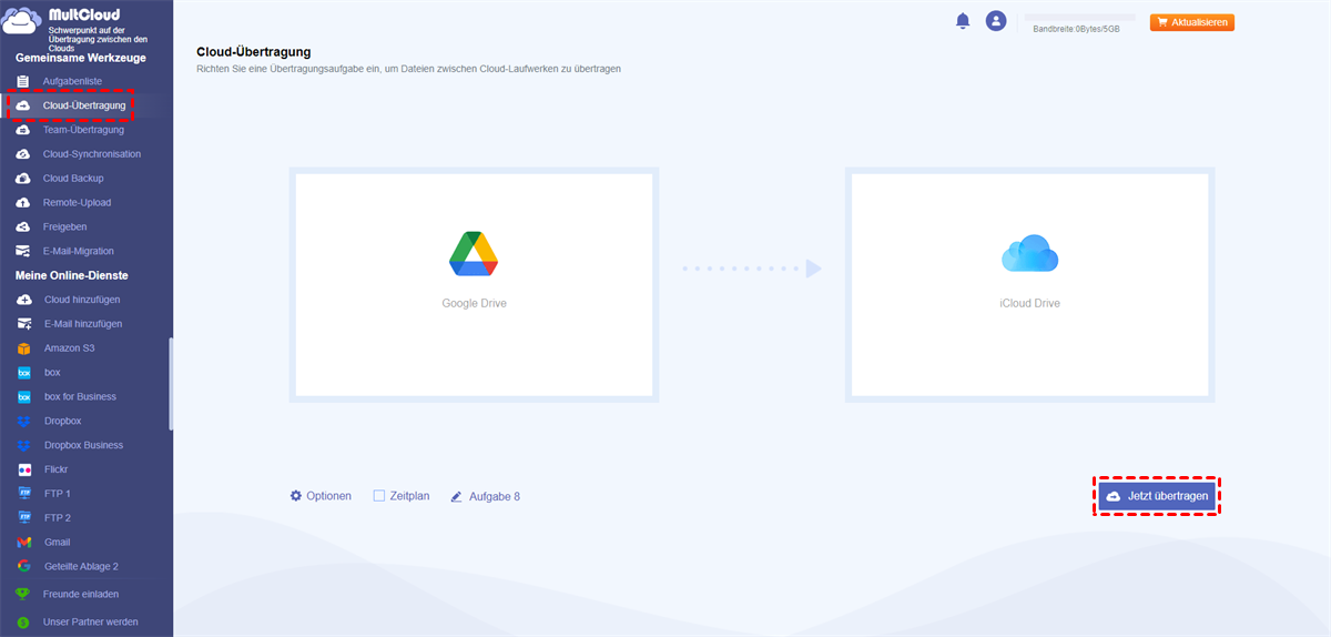 So verschieben Sie Dateien mithilfe von MultCloud von Google Drive zu iCloud Drive: