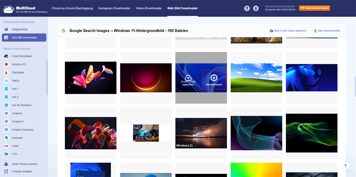Sie wissen nun, wie Sie einen Windows 11-Hintergrundbilder Download einfach und schnell durchführen. MultCloud ist die beste Wahl, um Bilder in großen Mengen herunterzuladen und sie lokal oder online für verschiedene Zwecke zu speichern.