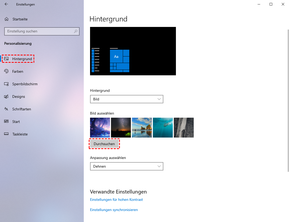 4. Wählen Sie ein Bild aus, um Ihren Hintergrund zu personalisieren.