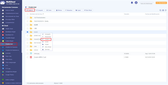 Haga clic en el servicio en la nube que le gustaría administrar (por ejemplo, Dropbox), luego verá todos los archivos en su servicio de Dropbox. Haga clic derecho en un archivo y abrirá el menú contextual. Haga clic en la opción que desea ejecutar.