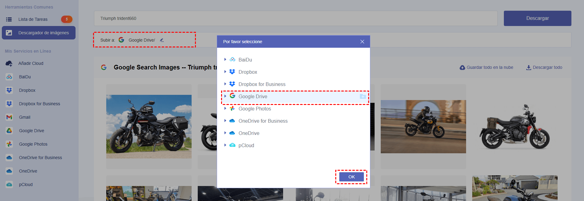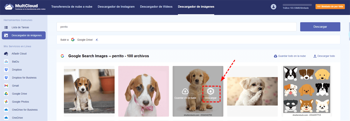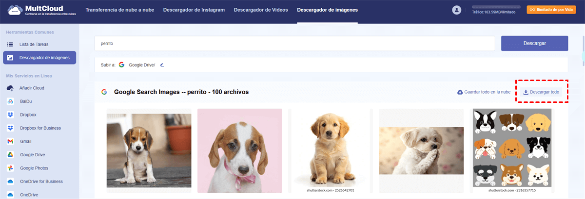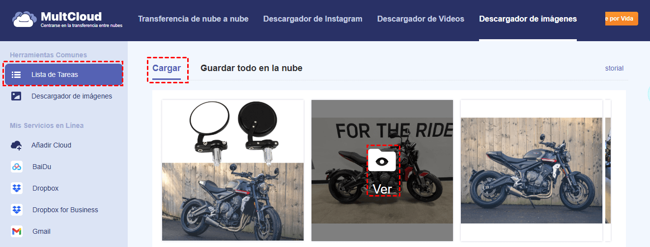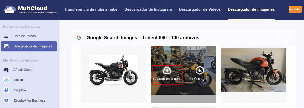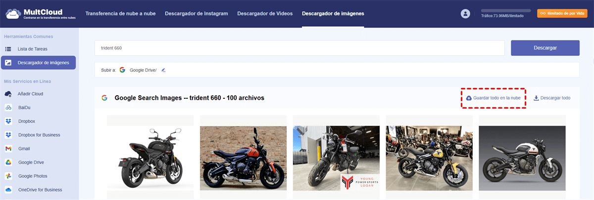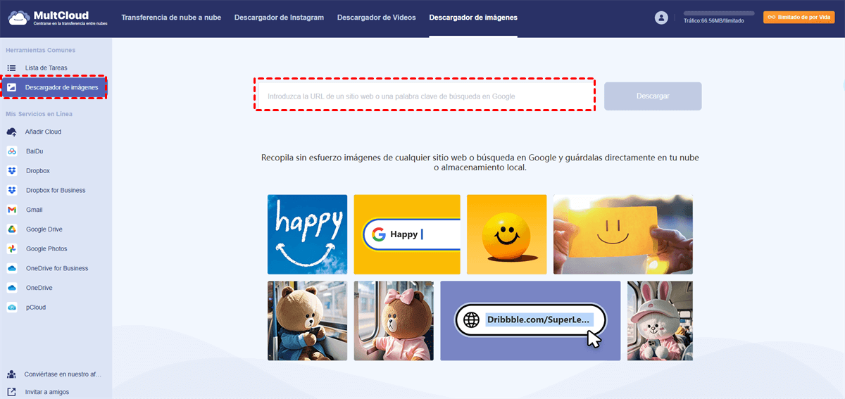 La función Descargador de Imágenes de MultCloud ofrece una forma práctica y eficiente para que los usuarios capturen imágenes desde el sitio web de Google y las integren en su almacenamiento en la nube o las descarguen directamente a su ordenador. Gracias a esta función, las imágenes pueden disfrutarse o compartirse en cualquier momento.
