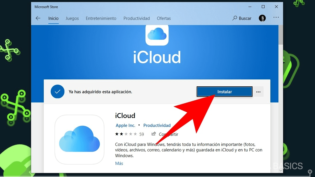 Paso 1. Instalar iCloud para Windows desde el sitio web de Apple o Microsoft Store.
