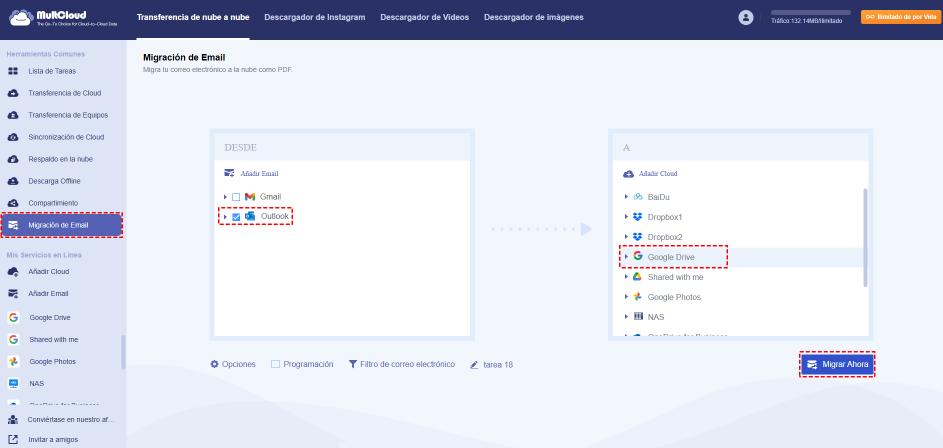 1. Guardar correos de Outlook en Google Drive a través de Migración de Email