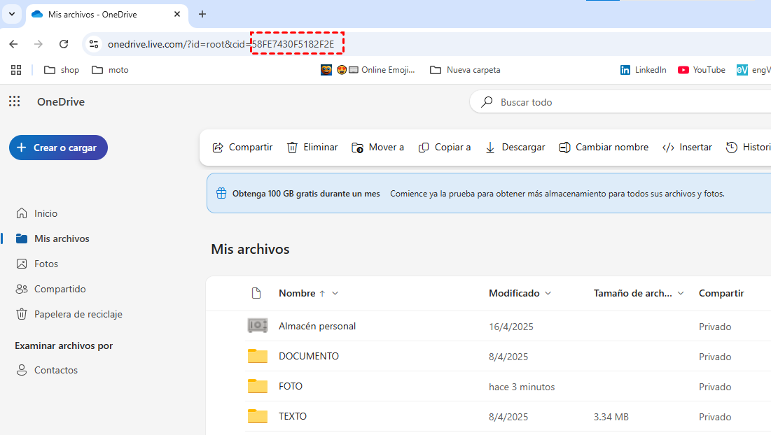 | 🖥️ Mapear en el Explorador de archivos local | Copia el código CID desde la versión web de OneDrive y pégalo en la sección “Conectar unidad de red” del Explorador de archivos de su equipo. |