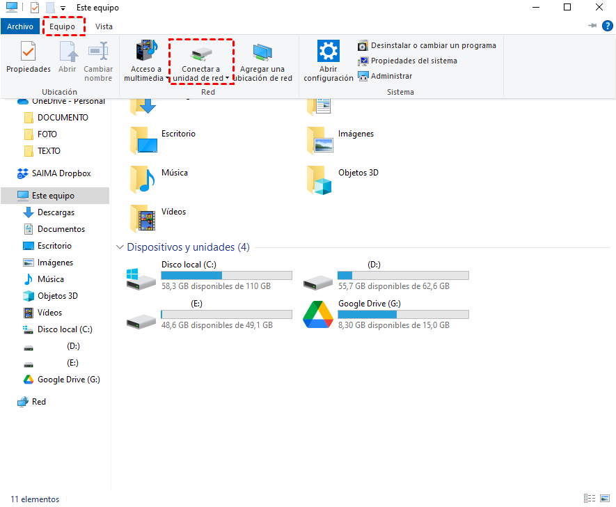 Paso 4. Haz clic en Equipo > Conectar a unidad de red.