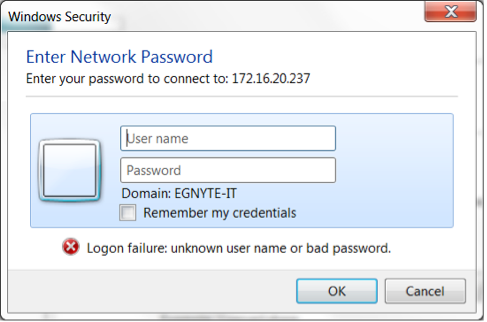 Paso 3: Ingrese sus credenciales de Active Directory o de usuario local para conectarse al recurso compartido CIFS. Haga clic en "Aceptar".