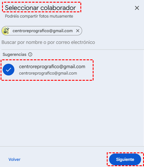 Método 1. Cómo sincronizar Google Fotos con otra cuenta a través de Compartido