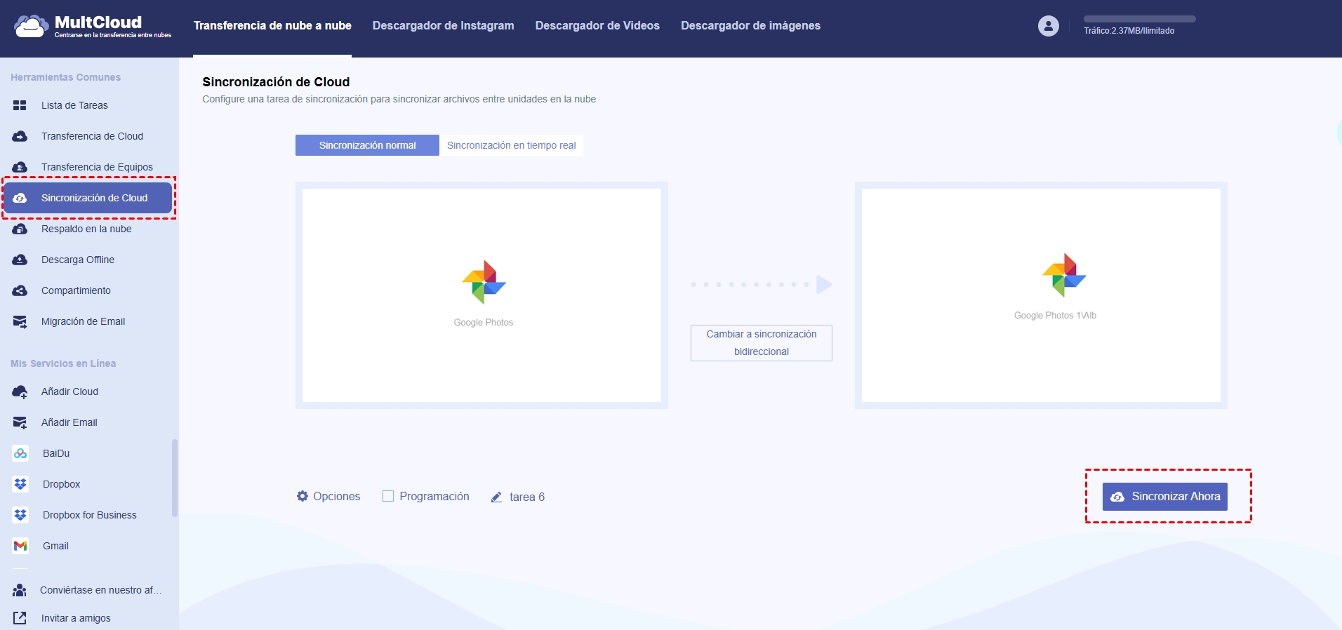 Le recomendamos encarecidamente que utilice MultCloud, un gestor de archivos en la nube altamente confiable. Este sistema le permitirá sincronizar de manera persistente o periódica imágenes, vídeos y álbumes entre cuentas de Google Fotos a través de hasta diez modos de sincronización de primera calidad.
