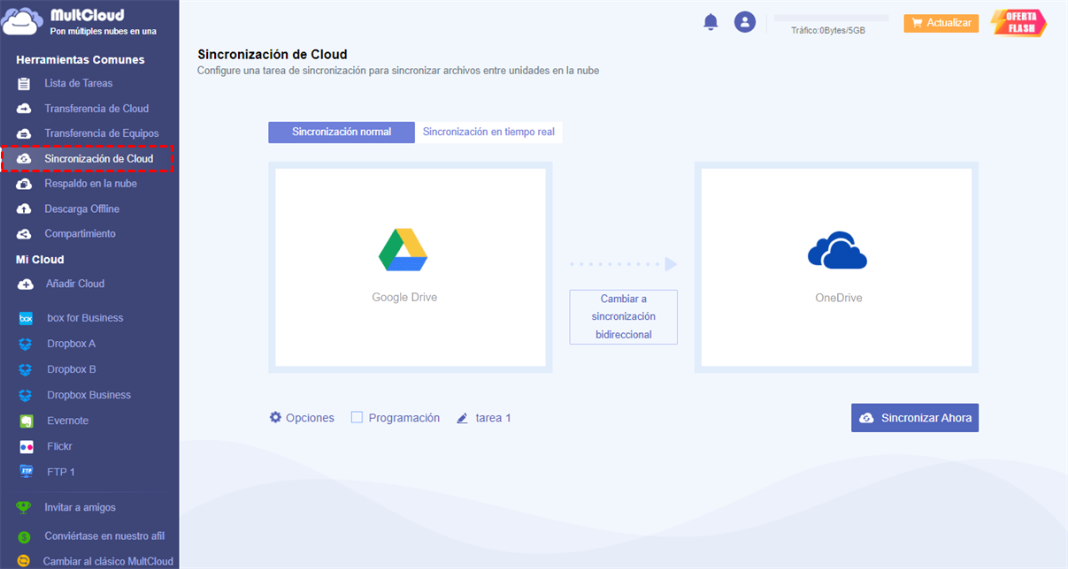 Sincroniza o Transfiere Archivos entre Servicios de Almacenamiento en la Nube Fácilmente - MultCloud