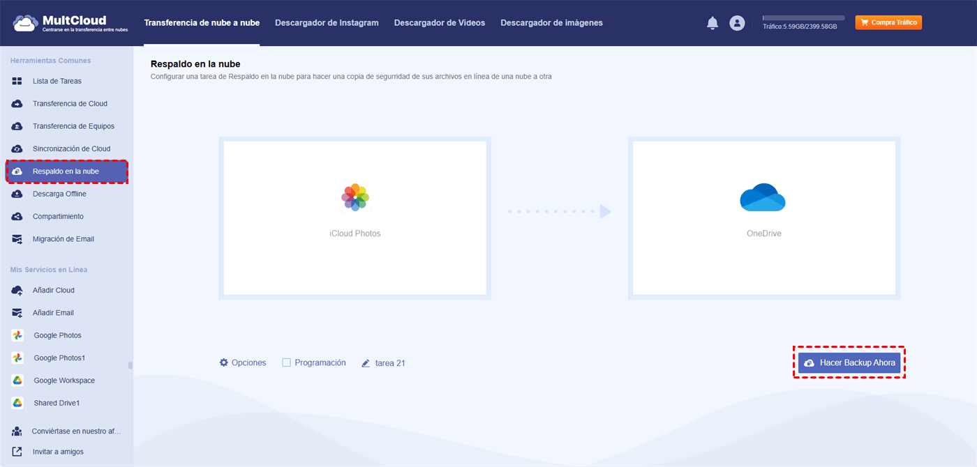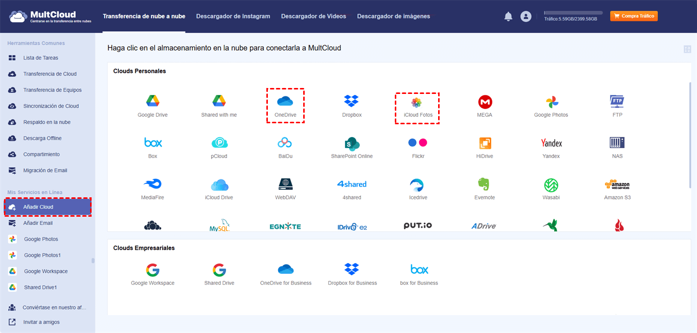 En lugar de utilizar los métodos tradicionales para hacer una copia de seguridad de tus fotos desde iCloud a OneDrive, también podrías utilizar algunos servicios de terceros para hacer una copia de seguridad de fotos y videos entre iCloud y OneDrive de forma cómoda sin descargar y cargar. Entre todos estos servicios, MultCloud puede ser el más profesional que ofrece aplicaciones para iOS/Android y un sitio web seguro para lograr la copia de seguridad de datos de nube a nube sin ningún riesgo de pérdida de datos.