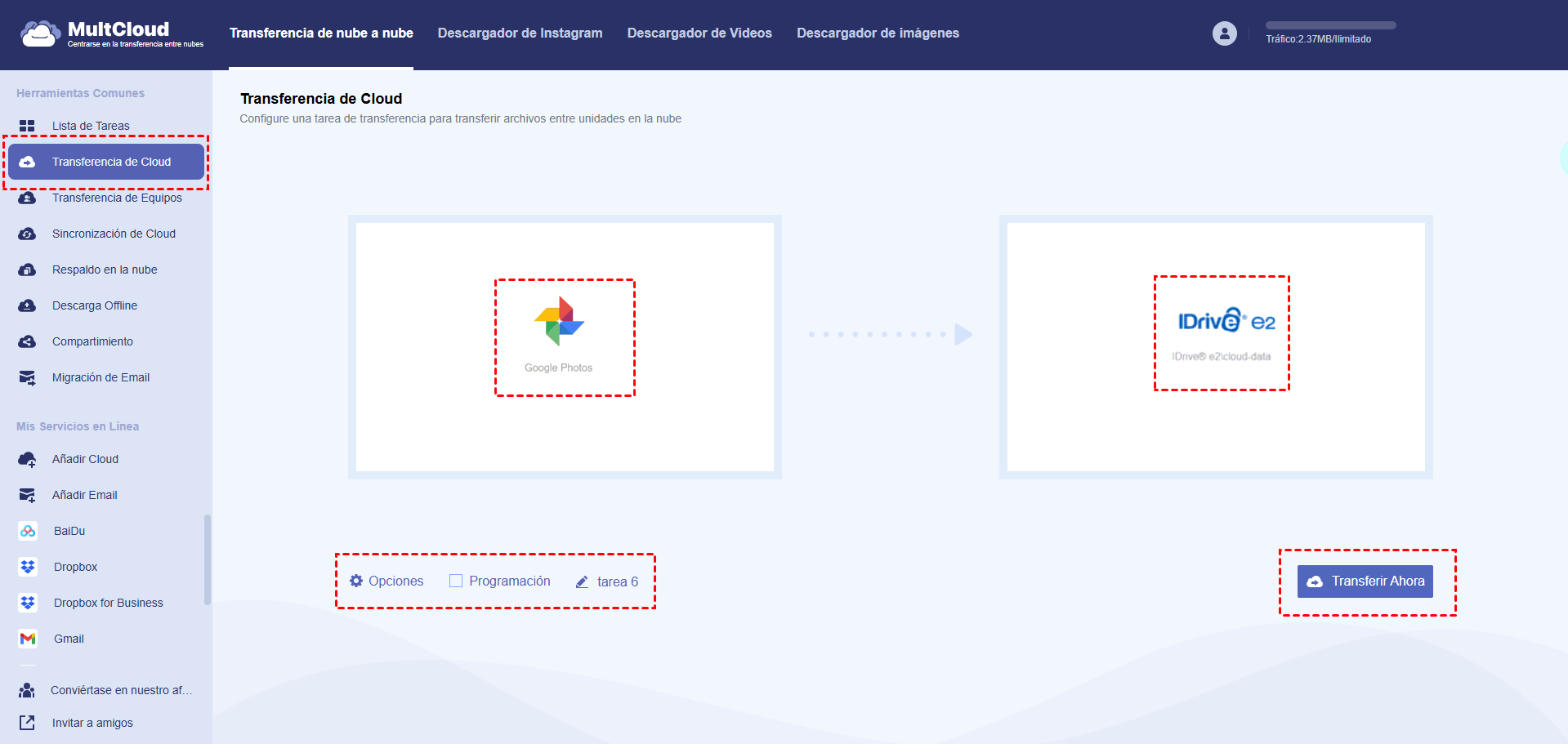 Esta plataforma permite gestionar múltiples cuentas de almacenamiento en la nube y transferir archivos directamente entre ellas. Con funciones destacadas como la migración por lotes, una interfaz intuitiva y opciones de transferencia programada, el proceso se vuelve mucho más simple y rápido.