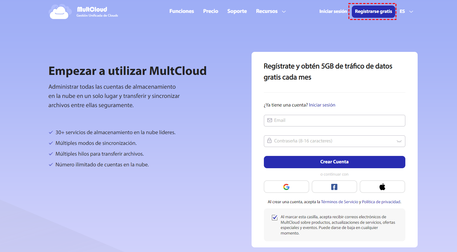 1. Para aprovechar MultCloud, en primer lugar, crea una cuenta. Luego, inicia sesión.
