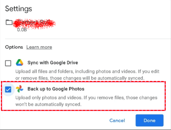 Se debe tener en cuenta que la premisa para ejecutar este método es que hayas descargado la aplicación de Google Drive para escritorio y que las fotos relacionadas también estén guardadas en el dispositivo de almacenamiento local. De esta manera, puedes optar por respaldar las imágenes de Google Drive en Google Photos durante la sincronización.