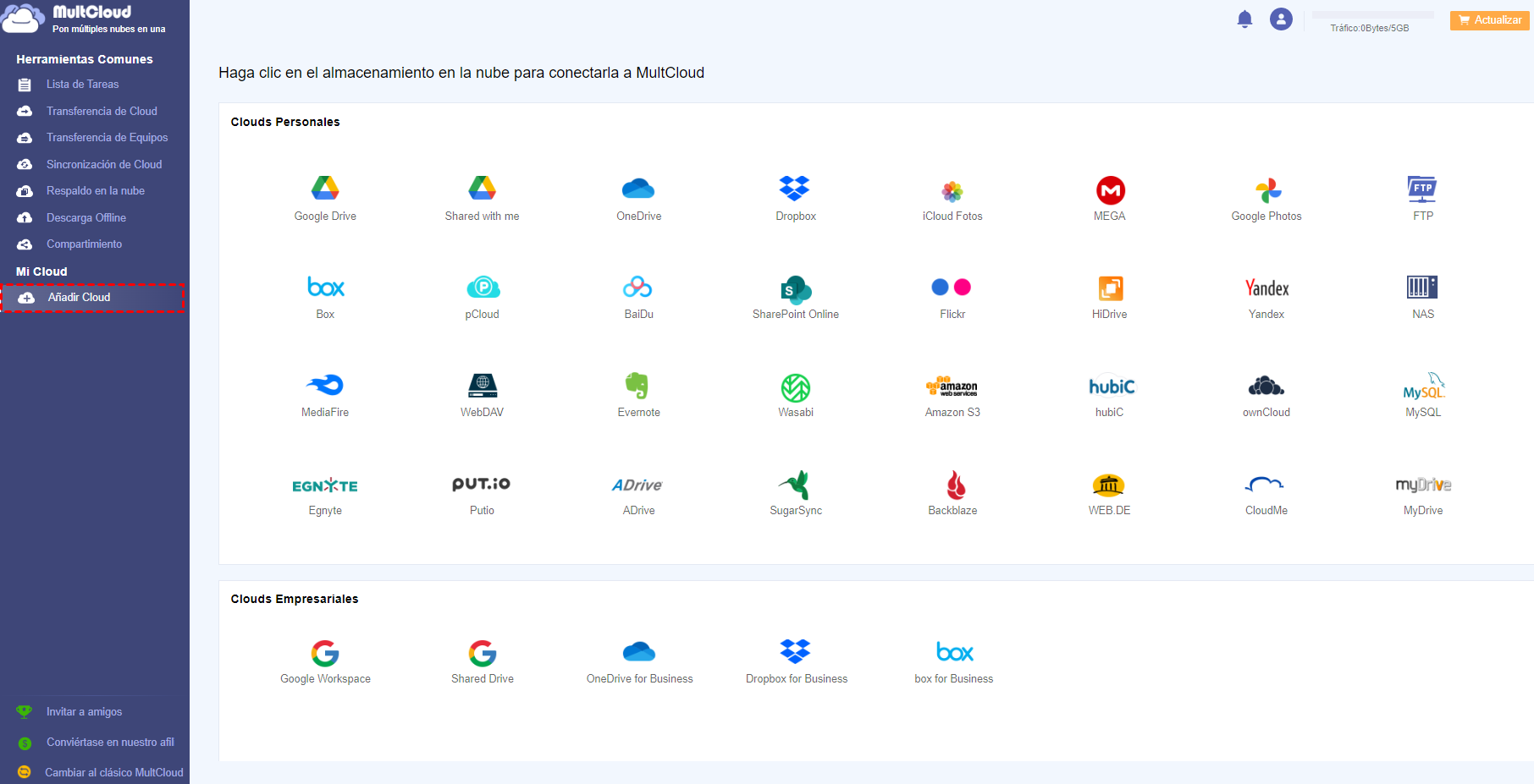 MultCloud no tiene límite en la cantidad de nubes a agregar. Si tiene varias nubes compatibles con MultCloud, puede agregarlas todas a MultCloud.