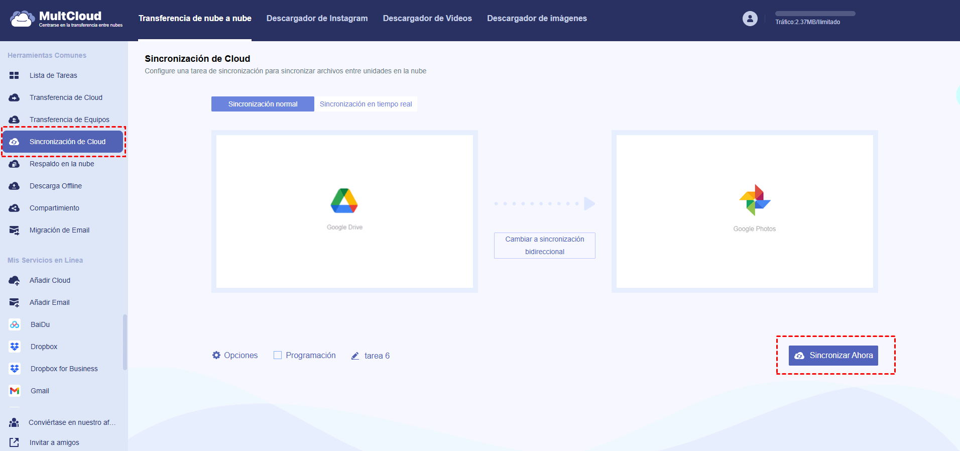 4. Finalmente, haz clic en "Sincronizar Ahora" para transferir fotos de Google Drive a Google Photos.