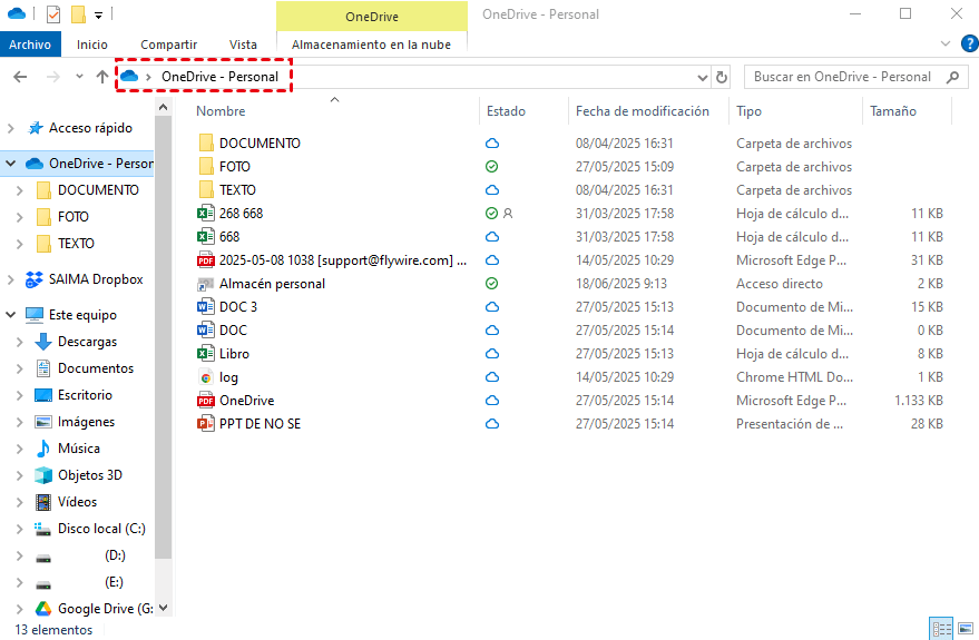 Forma 1. Compartir OneDrive Personal con OneDrive para la Empresa Mediante Arrastrar y Soltar