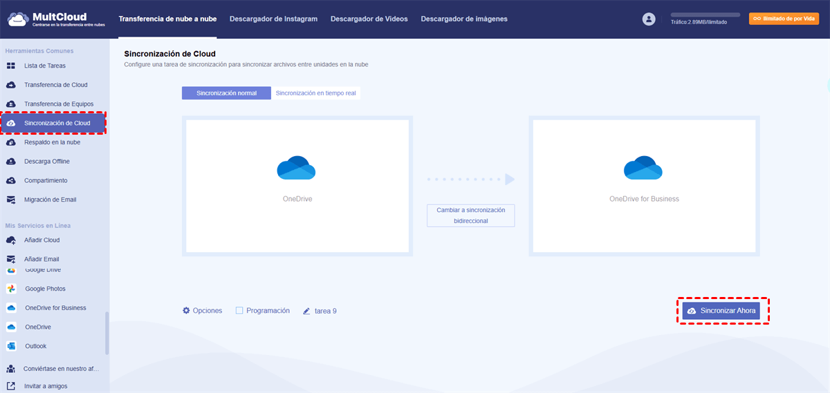 Además de compartir archivos, también puedes sincronizar directamente tu cuenta personal de OneDrive con una cuenta de OneDrive para la Empresa mediante MultCloud.